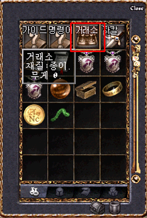 인벤토리에 거래소 아이템을 클릭합니다.