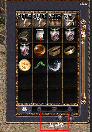 인벤토리 휴지통 옆 보관함을 클릭합니다.
