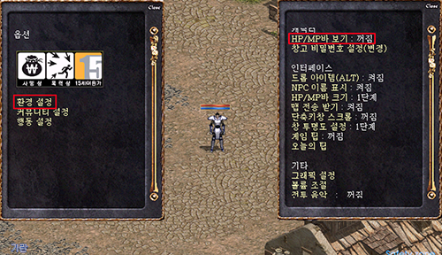 - 캐릭터 HP/MP바 보기를 켜짐으로 변경해 줍니다.